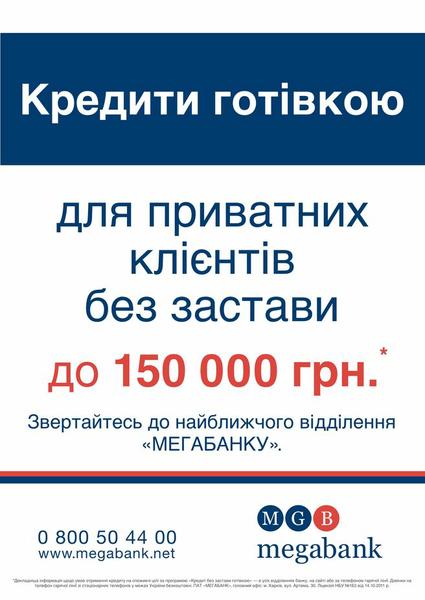 Самым востребованным продуктом среди клиентов – физических лиц в "МЕГАБАНКЕ" остается кредит наличными