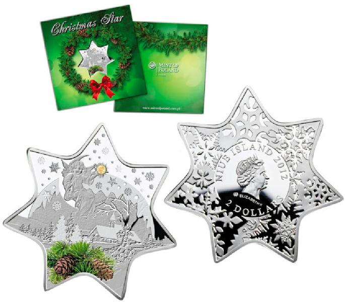 Монета продается в специальной блистерной упаковке, стилизованной под рождественскую открытку с новогодними пожеланиями. Уникальная форма семиконечной звезды, украшение кристаллом Swarovski, а также технология тампопечати с матовыми фрагментами рельефа делают монету поистине исключительной.