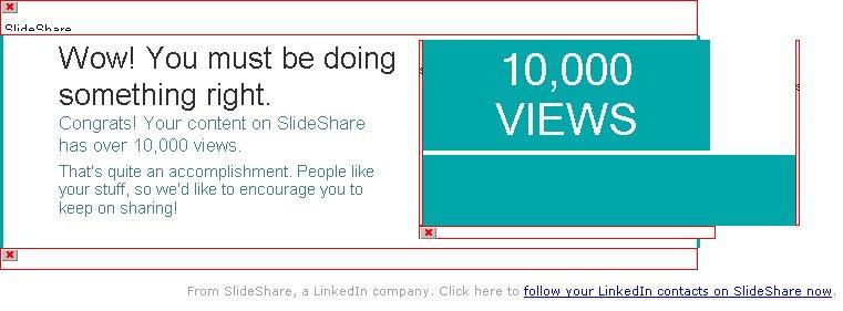 Справочно: SlideShare - сервис слайд-хостинга презентаций, который предоставляет пользователям возможность оценить, комментировать и делиться загружаемым содержимым. Его посещает приблизительно 58 миллионов уникальных посетителей в месяц, и около 16 миллионов зарегистрированных пользователей. SlideShare был признан среди 10 лучших в мире средств для получения образования и электронного обучения в 2010 году. Среди пользователей сервиса NASA, Всемирный экономический форум, Hewlett Packard, IBM и Кредитпромбанк.