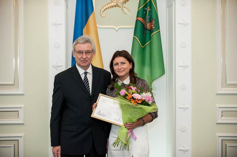 Начальник управления разработки и методологии банковских продуктов "МЕГАБАНКА" Т.Яхина получила награду Харьковского горсовета