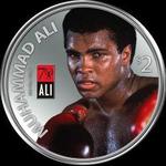 Монетный двор Новой Зеландии представил эту монету в сентябре 2012 года в честь 70-летия выдающегося боксера. Она отчеканена из чистого серебра 999 пробы, качество чеканки – пруф. Вес монеты – 1 тройская унция (31,103 г). Номинал – 2 доллара. Тираж – до 7,5 тысяч.
