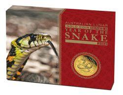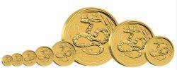 Монеты изготовлены из золота 999.9 пробы, разного веса и качества чеканки. На аверсе каждой монеты можно увидеть изображение змеи, надпись «Год Змеи» и пометку «Р» — знак всемирно известного Монетного двора г.Перт. На реверсе монет отчеканено портрет Её Величества Королевы Великобритании Елизаветы II, указаны год выпуска и номинал монеты.