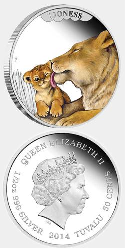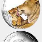 В отделения Райффайзен Банка Аваль поступила серебряная монета «Материнская любовь. Львица», отчеканенная Монетным двором г.Перт (Австралия). Отношения между матерью и ее детенышем является совершенно особым явлением и в мире животных. Эта монета стала первой в новой серии «Материнская любовь», которая посвящена проявлениям уникальной связи между матерью и ее потомством в дикой природе.На аверсе монеты отчеканен портрет Ее Величества Королевы Елизаветы II. Вдоль края монеты расположены надписи: "QUEEN ELIZABETH II", "1/2oz 999 SILBER 2014", указаны эмитент — "TUVALU" и номинал — "50 CENTS".