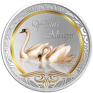 У відділеннях Діамантбанку можна придбати срібну монету "Завжди з тобою", яка стане прекрасним подарунком для коханої людини з нагоди Дня Святого Валентина.Монета представлена Монетним Двором Майєра, викарбувана зі срібла 999-ої проби в якості пруф, має вагу 20 г, розмір – 38.6 мм.