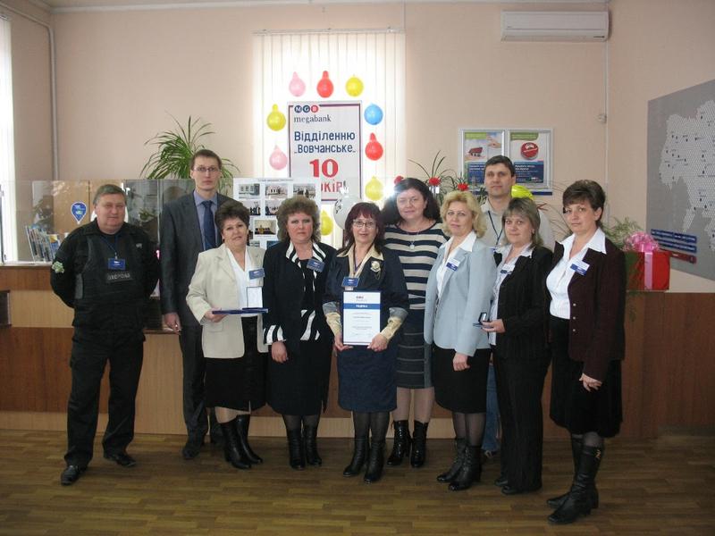 Волчанское отделение "МЕГАБАНКА" отметило10-летний юбилей. На торжестве присутствовали представители главного офиса банка, которые вручили лучшим сотрудникам грамоты и подарки за добросовестный труд.Как отметила управляющая Мария Уварова, к своему 10-летию отделение подошло с хорошими результатами. В частности, сегодня Волчанское отделение обслуживает более 4 тысяч клиентов – физических лиц и около 100 юридических лиц, большинство из которых – фермерские хозяйства и агропредприятия.