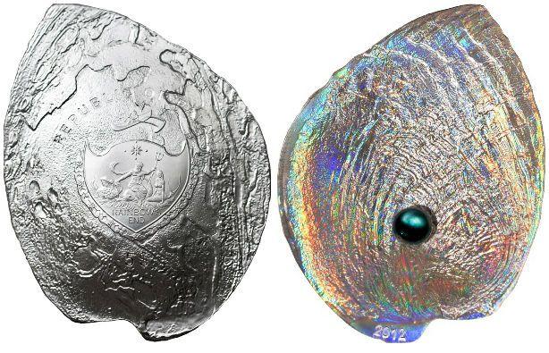 В этой монете авторы продолжили воплощать идею воспроизведения искусства природы: монета имеет необычную форму, повторяющую настоящую раковину устрицы. Внутреннюю сторону монеты-раковины довершает голограмма, которая напоминает перламутр. Также реверс монеты инкрустирован настоящей жемчужиной новозеландской устрицы Галиотис ирис. Жемчужины этого моллюска известны в мире как элементы дорогих ювелирных украшений.