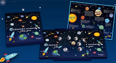 Юнекс Банк начал продажу детской версии набора серебряных монет «Солнечная система». Упаковка набора украшена красочными рисунками с интересным познавательным описанием 8 планет системы и Солнца.На реверсах монет можно увидеть важнейшие объекты Солнечной системы – Солнце и планеты Земля, Меркурий, Венера, Марс, Юпитер, Сатурн, Уран, и Нептун. Монета «Солнце» полностью покрыта позолотой, а на другие монеты нанесены цветные изображения планет, идентичные их фотографиям из космоса. Аверсы монет украшены античной римской скульптурой Атланта, поддерживающего небосвод.