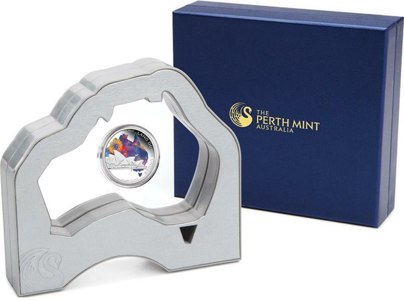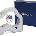 Австралийскую стилистику можно увидеть и в оригинальной упаковке монеты, которая представляет собой футляр-подставку с серебристым контуром в виде континента Австралия.