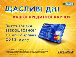 Нулевой тариф на снятие наличных действует для держателей кредитных карт с 1 по 16 мая 2012 года в сети банкоматов Райффайзен Банка Аваль.